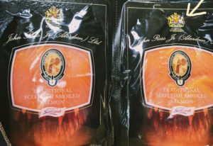 スモークサーモンはコストコで買った「Traditional Scottish Smoked Salmon」を使いました!「Royal warrant」も見えますが、比較的に値段も高くなく(340gx2, 税抜き価格 14.99 GBP)美味しいので、オススメですおねがい