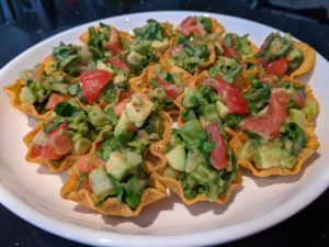 あとは、MexicanのTacoですが、小さいコップ形のtortillaguacamoleをのせるだけで、できあがりです!口笛