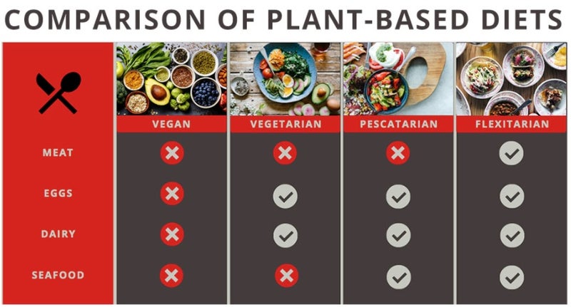 簡単に言うと、ベジタリアンは肉とシーフードを食べない、ヴィーガンは動物性のもの(肉、シーフード、卵、乳製品など)をすべて食べないことです。あと、「Pescatarian」は、肉は食べないが、シーフードや卵・乳製品などは食べることですね。